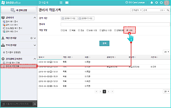 ▶ 관리자 작업기록에 삭제 옵션을 추가하여 삭제 기록 확인 가능합니다.