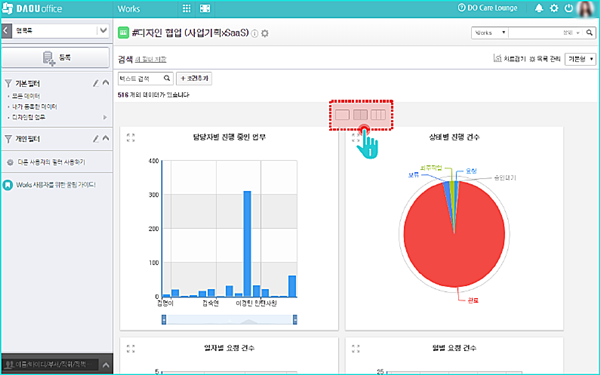 ▶ Works 차트의 레이아웃을 3가지 형태로 변경할 수 있습니다.