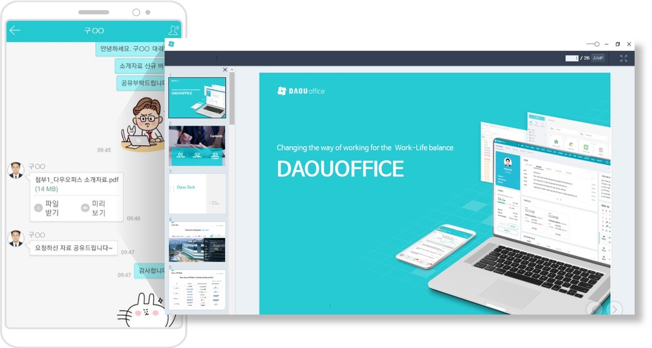 “합리적인 가격, 신속한 업무 확인, 최고의 업무 효율성! 이 3가지 모두를 만족시켜주는 그룹웨어 다우오피스 적극 추천드립니다.” - 개발부 김재하님 Q. 간단하게 회사소개 부탁드립니다. 이