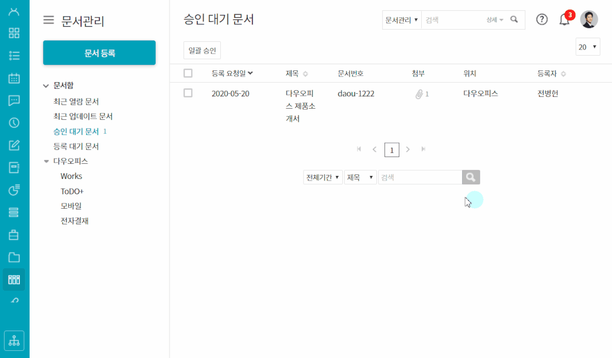 문서함 관리자는 문서 승인 권한을 통해 전사 문서를 더욱 효율적으로 관리할 수 있습니다.