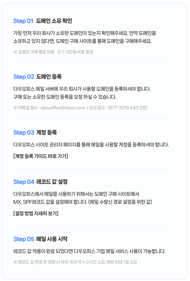 ▶ 위의 기업 메일 생성 시 준비 사항에 대해 다소 이해가 안 가거나,