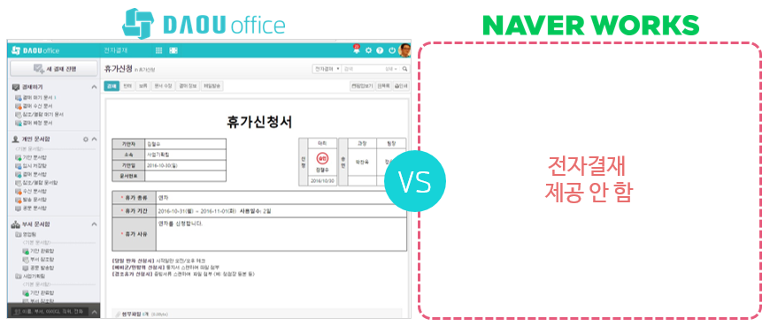 무엇보다 전자결재 기능이 필요하신 분들에게는 네이버웍스가 적합하지 않습니다.