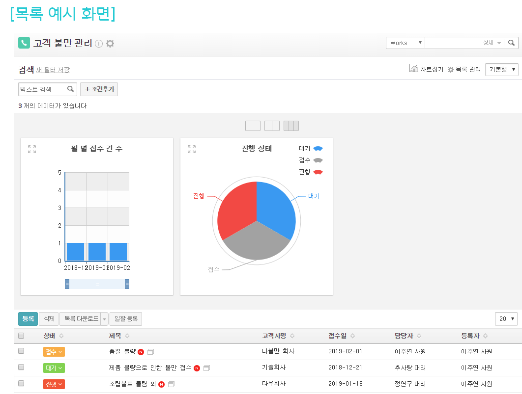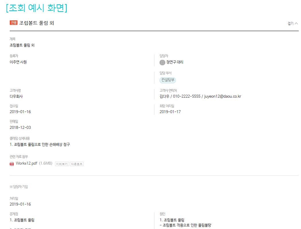 고객사관리 - 견적서관리 - 고객문의 앱을 연동하여 관리할 수 있는 사례입니다.